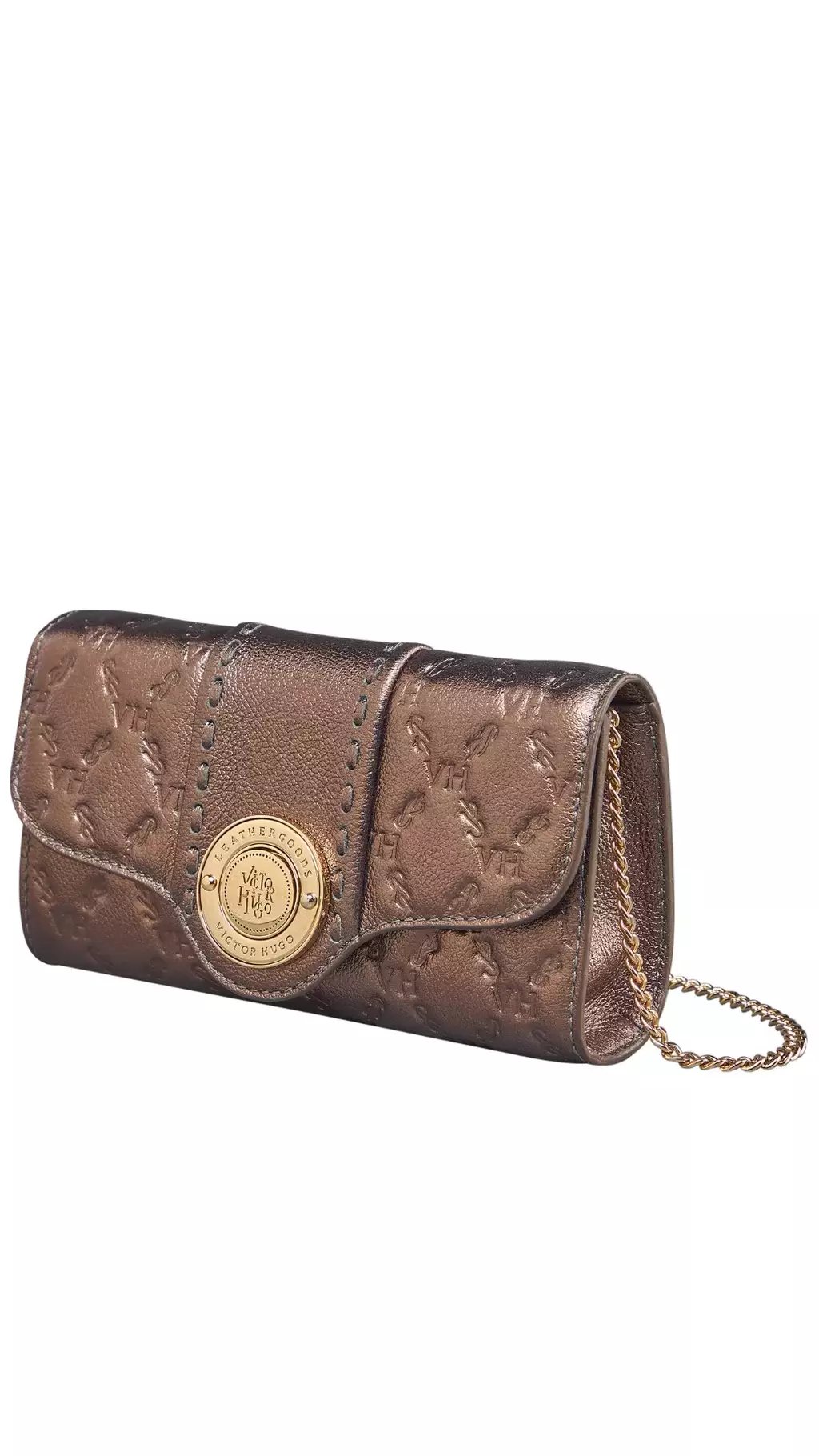 A encantadora Bolsa Lock Clutch Elos VH, ideal para mulheres que buscam adicionar um toque de delicadeza e estilo. Com um design exclusivo, é pontuada pelo fecho Medallion VH dourado. A Coleção ELOS VH é uma releitura da Clássica estampa da marca nos anos 80. Artesãos realizam com maestria o trabalho da prensa no Couro de altíssima qualidade. Realçando o DNA e herança da VICTOR HUGO.